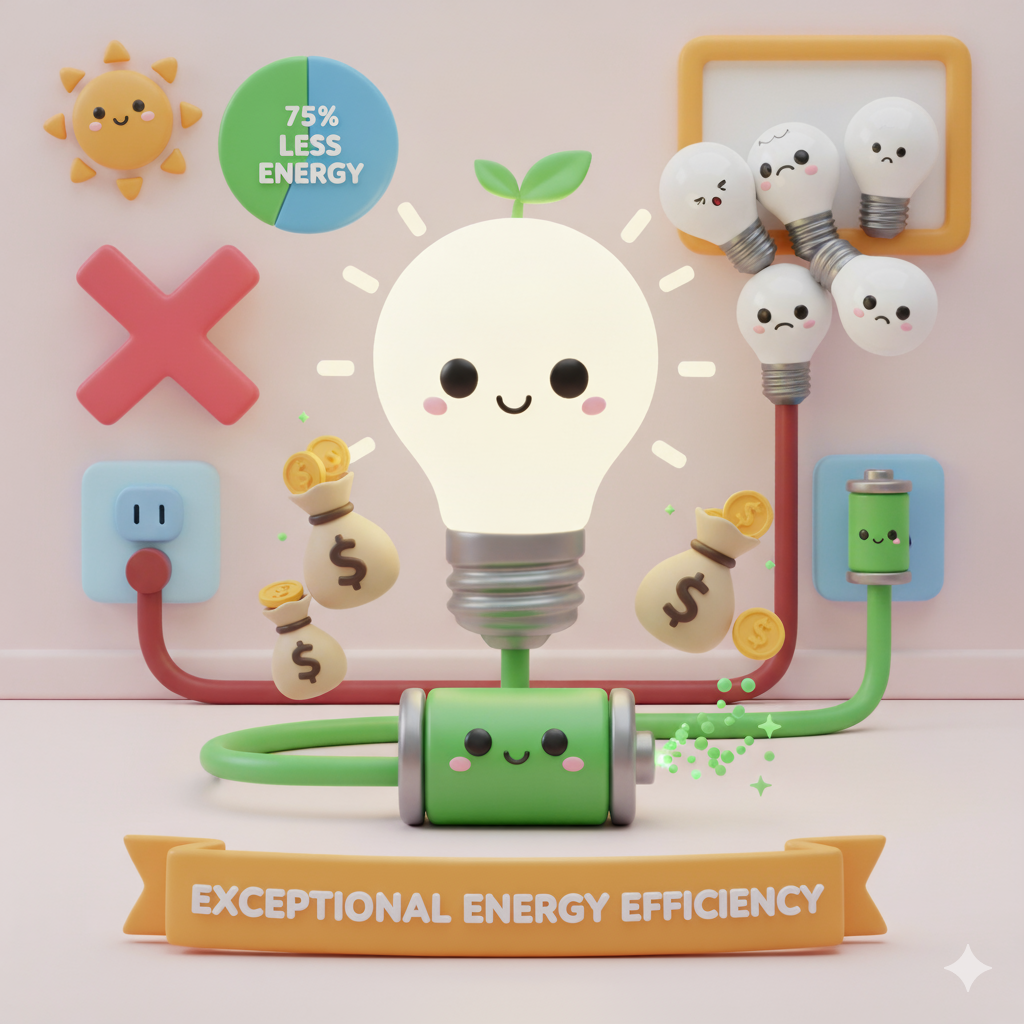 By using significantly less electricity, our products help reduce carbon emissions, especially in areas that rely on fossil fuel-based power generation.